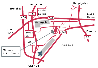 Prendre la sortie « 16 bis » (Gosselies Nord) Suivre les indications menant à l’Aéropôle (suivre CEMI)